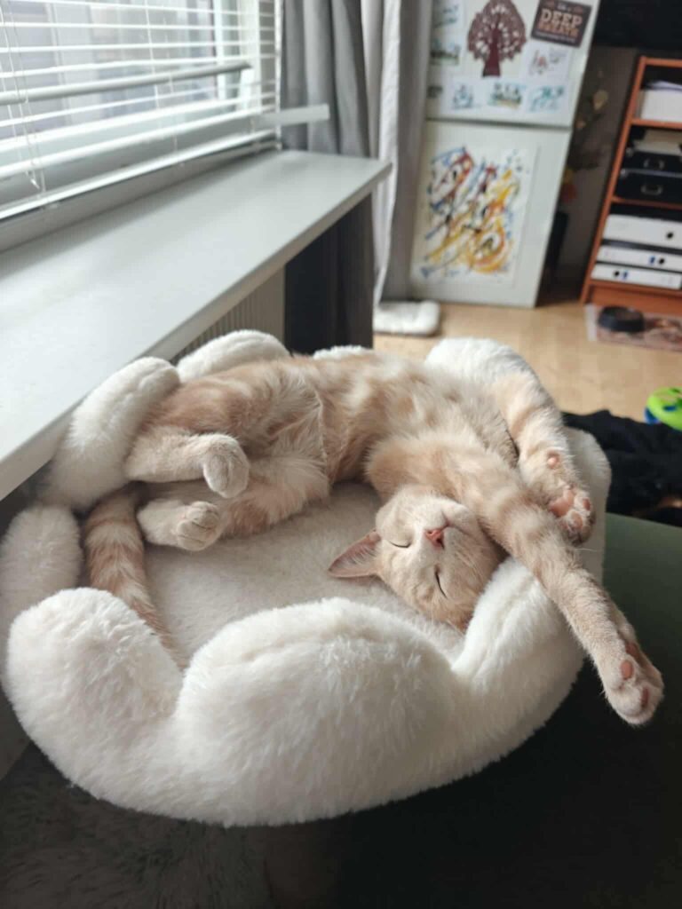 Han spiller gerne lidt kostbar, men glemmer hurtigt sin facade, når der bliver kælet – for det er jo faktisk ret fantastisk 😍 Han elsker selskab og sover sjældent alene.