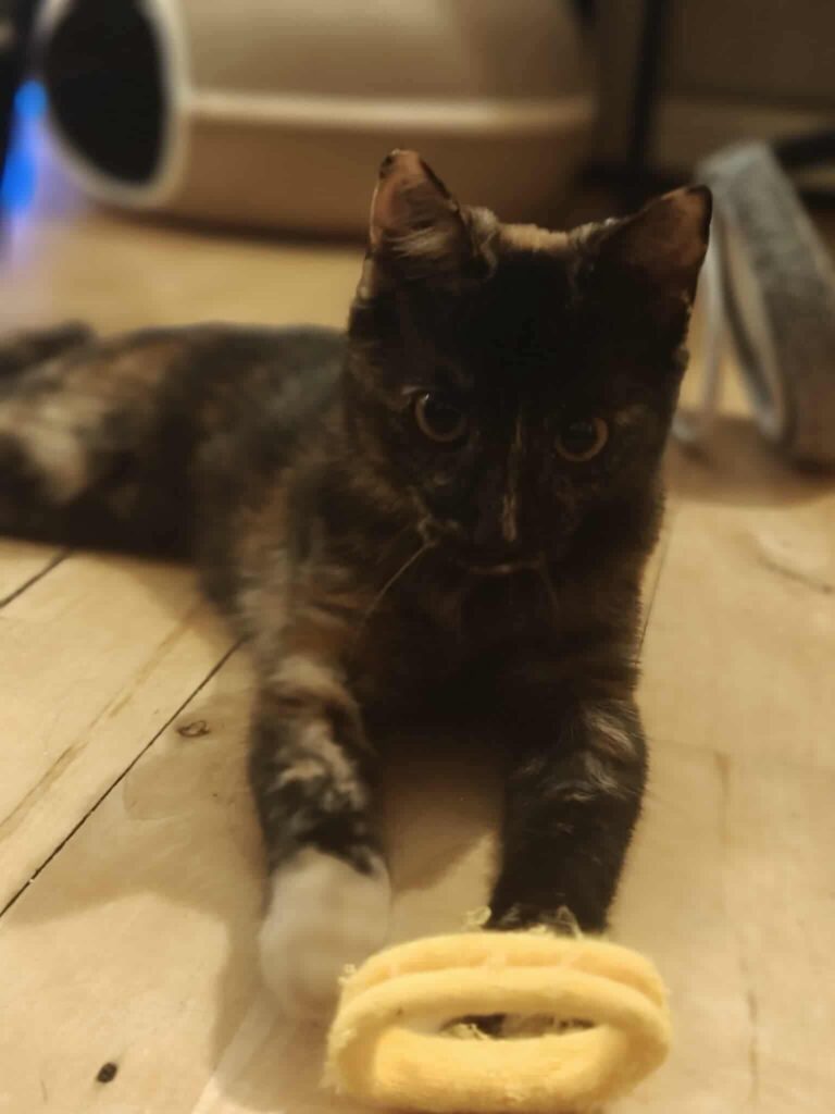 Hun er en kælepotte uden lige, som elsker at være tæt på både mennesker og de andre katte. Hun kan virke lidt forsigtig først, men åbner sig hurtigt – og så er hun fuld af kærlighed, spinderi og charme 🐾