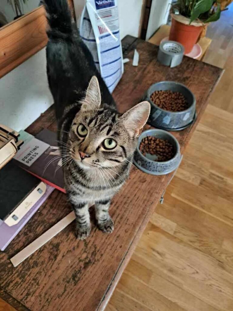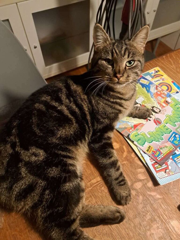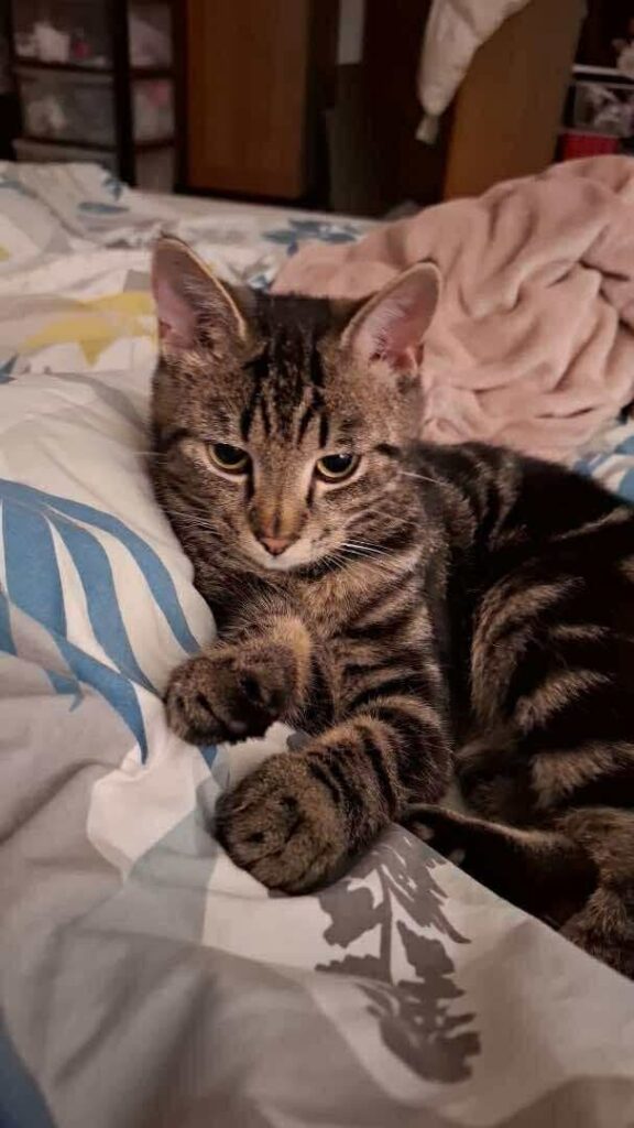 🐈⬛Han er en dejlig gråstribet kat med de mest fantastiske grønne øjne. 😍