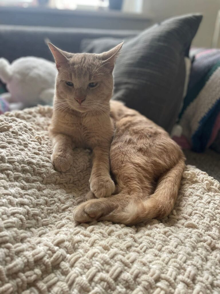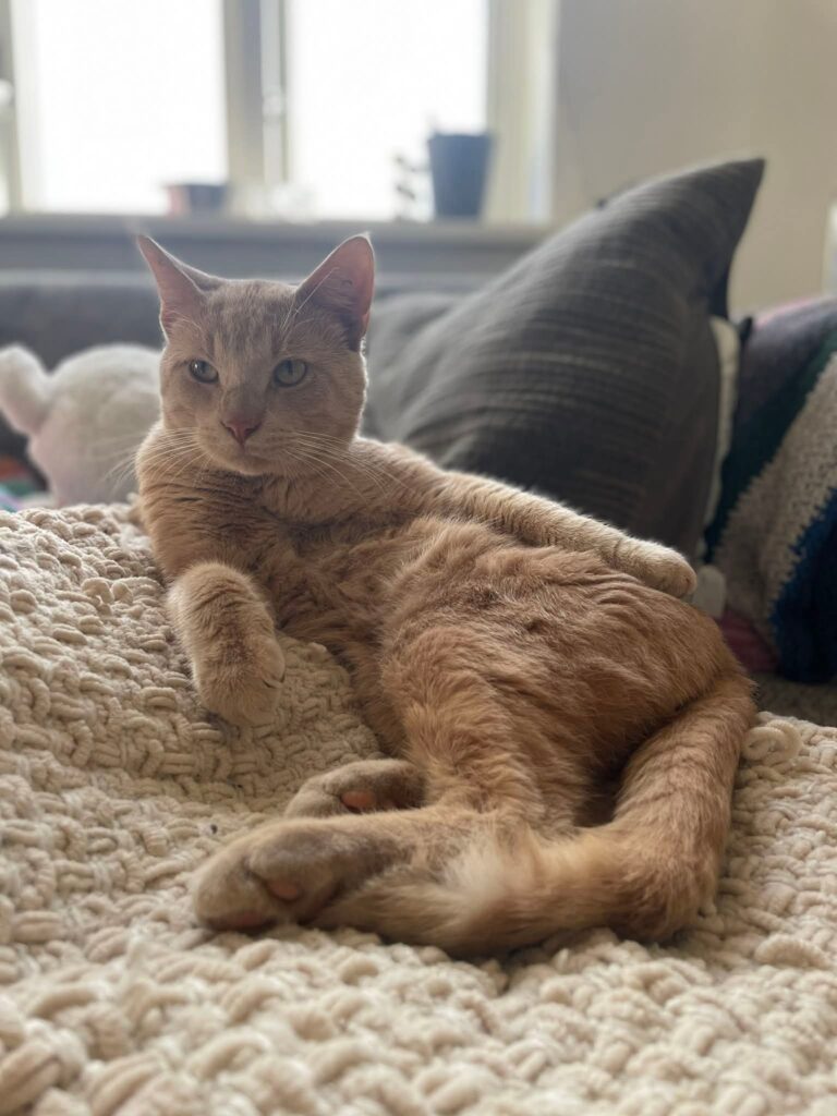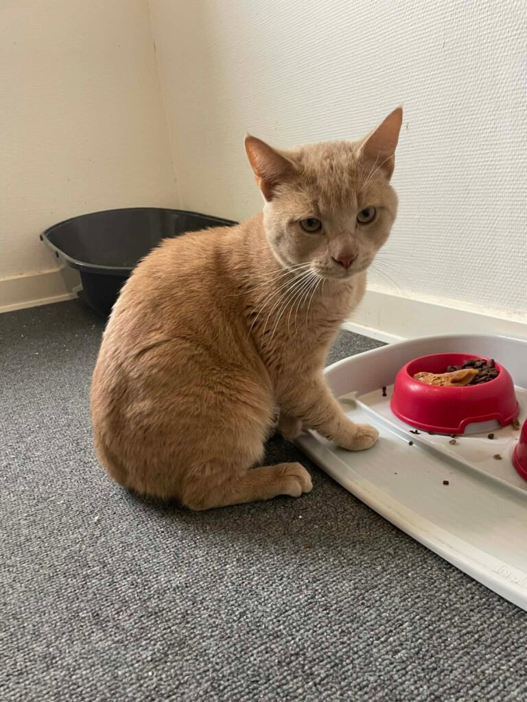 Leo (Leopold i fulde navn) er en utrolig smuk cremefarvet hankat, vurderet til at være fra start februar sidste år. Han kan besøges i Ørbæk.