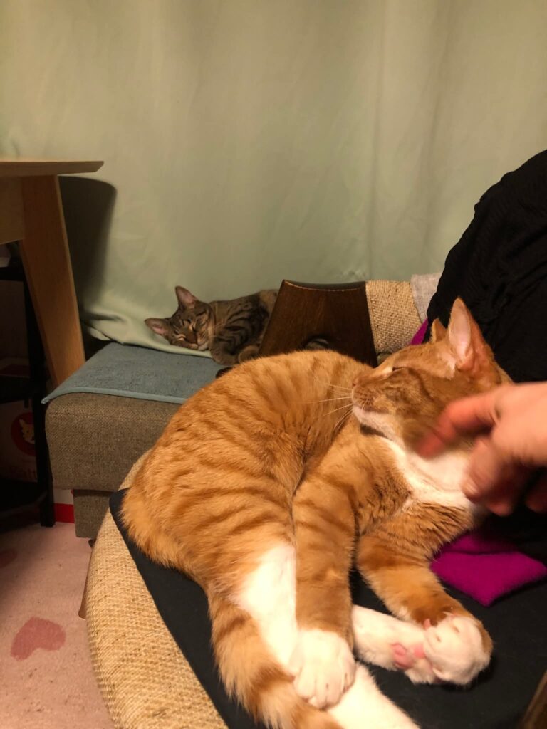 Når de først bliver trygge, udfolder deres skønne personligheder. De leger sammen og det kan tydeligt mærkes at Lola holder øje med Chilli i hans dumdristige udforskninger for at passe på ham. Sammen er de det perfekte kattepar ❤️