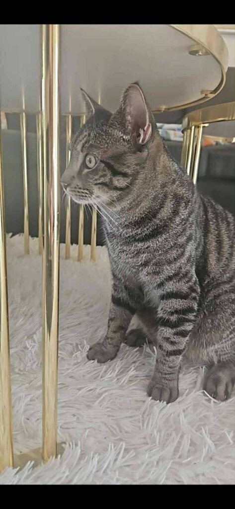 Han elsker at være med i det hele, nysgerrigt følge med i hvad der sker omkring ham – og han går aldrig af vejen for en god leg med fjerpind eller bold 🧶🐾