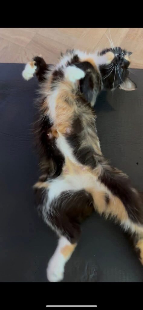Mollie er en utrolig nem, rolig og kælen kat, der hurtigt får tillid til mennesker. Hun er stille af natur, meget medgørlig og elsker nærvær – især de små hyggelige “samtaler” med sine mennesker 😻